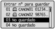 Si seleccionó <Abreviada> en el paso (3), seleccione el número que desea registrar empleando [