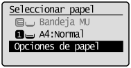 ] (Seleccionar papel/Opciones) para cerrar la pantalla <Seleccionar papel>.