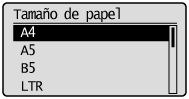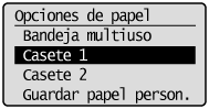 <Casete 2> se mostrará únicamente cuando esté instalado el cassette de papel opcional (Cassette 2).