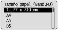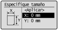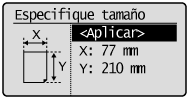 Especifique el tamaño de papel en orientación vertical (<Y>