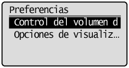 ] o [ ] y pulse [OK]. Cuando esté seleccionado <Sólo en caso de error> la máquina emitirá un sonido únicamente cuando se produzca un error. Proceda con el paso 5. |