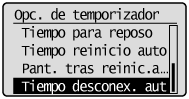 Una vez establecido el temporizador, la máquina volverá automáticamente al modo de fuera de línea cuando no se haya utilizado durante un período de tiempo especificado.