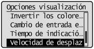 Ajuste la velocidad de desplazamiento de los menús cuando no puedan verse en la pantalla todos los elementos del menú.