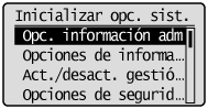 Seleccione <Inicializar opciones de sistema> utilizando [