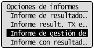 ] (Reporte) para cerrar la pantalla <Opciones de informes>.