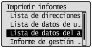 Seleccione <Lista de datos del administrador sistema> utilizando [