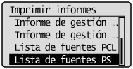 Seleccione <Lista de fuentes PCL> o <Lista de fuentes PS> utilizando [