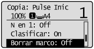 Si el documento es más pequeño que el tamaño de papel de copia, podrá borrar los bordes oscuros y las líneas de marco que aparecen alrededor del papel de copia. También podrá proporcionar una anchura constante de margen (fondo blanco) en torno al papel de copia.