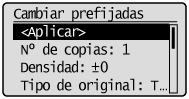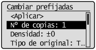 ] (Restablecer) o cuando la máquina regresa a la pantalla predeterminada una vez finalizado el reinicio automático. Podrá cambiar los valores predeterminados para ajustarlos a sus necesidades.