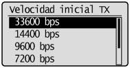Seleccione <Velocidad inicial TX> utilizando [