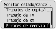 Cuando utilice esta funciónEspecifique <Sólo en caso de error> en <Guardar imágs. en mem.> de <Guardar/Imprimir al reenviar>.