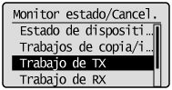 ] para seleccionar <Trabajo de TX> y pulse [OK].