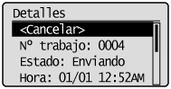 ] para seleccionar el trabajo que desea comprobar o cancelar y pulse [OK].