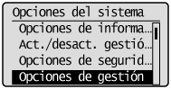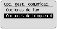 Seleccione <Opciones de gestión de comunicaciones> utilizando [