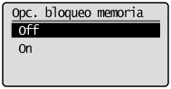 Seleccione <Opciones de bloqueo de memoria> utilizando [