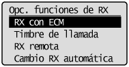 Seleccione <Opciones de funciones de RX> utilizando [