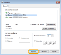 Dispositivos] -> el fax que esté utilizando -> [Imprimir]. Si se muestra el mensaje [La impresora necesita tu atención. Vete al escritorio para solucionar el problema.], vaya al escritorio y continúe con el paso 3. |