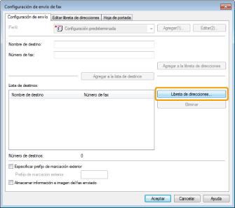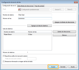 El número de destinatarios a los que podrá enviar faxes al mismo tiempo dependerá de las condiciones en las que se haya adjuntado la portada. Para obtener una información detallada, consulte la ayuda en línea (consulte "Visualización de la ayuda en línea (PC Fax)").