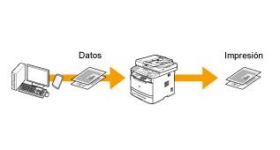 El controlador de impresora instalado en este producto permite impresión a velocidad óptima compartiendo la carga del procesamiento de los datos de impresión entre el ordenador y la impresora. Además, el controlador de impresora ofrece diversas opciones de acabado, como pueden ser escalado y encuadernaciones.