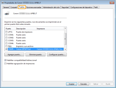 Configure las opciones de puertos en su ordenador para utilizar la dirección IP de la máquina.