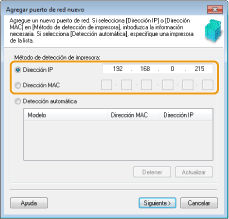 Obsérvese que se asignará una dirección IP diferente al controlador de impresora instalado. Para utilizar la dirección IP de la máquina, configure las opciones de puertos en su ordenador tras la instalación.