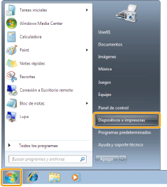 Para Windows Vista, haga clic en [  ] (Iniciar) -> [Panel de control] -> [Impresoras].