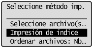 Seleccione <Impresión de índice> utilizando [] o [] y pulse [OK].