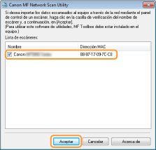 Abra MF Network Scan Utility en otro ordenador y quite la marca de la casilla de verificación del escáner.