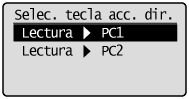 ] (Escanear > PC1, Escanear > PC2) en la cual está registrado el destino que desea seleccionar.