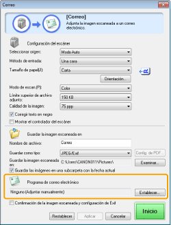 Cuando se haga clic en [Inicio], aparecerá el cuadro de diálogo [ScanGear MF], que le permitirá configurar opciones avanzadas para la lectura.