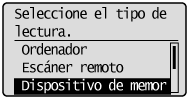 Cuando escanee desde el alimentador o establezca el <Formato de archivo> en <JPEG>Después de escanear el documento, los datos leídos se enviarán a la memoria USB.