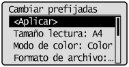Asegúrese de que está seleccionado <Cambiar prefijadas> y pulse [OK].