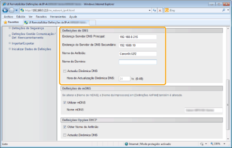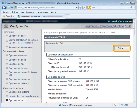 Antes de especificar las opciones de DNS, consulte "Atención (configuración de DNS)".