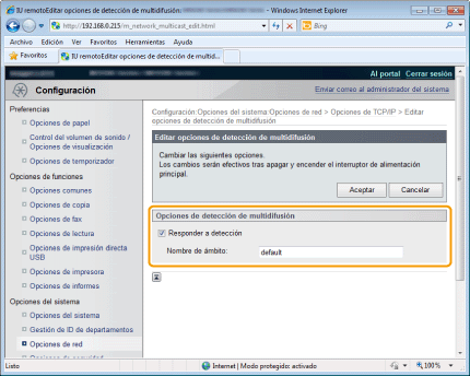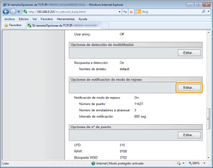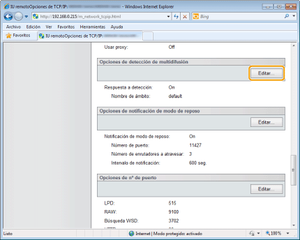 Haga clic en [Editar] en [Opciones de detección de multidifusión].