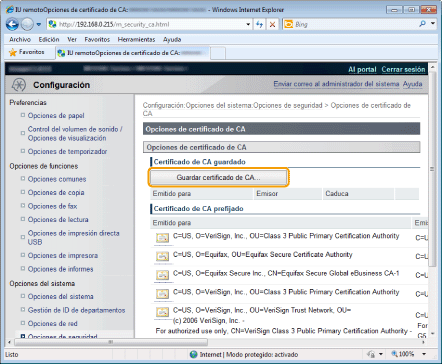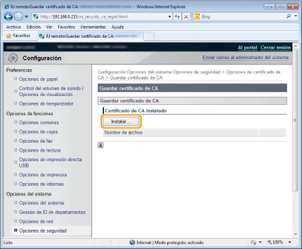 Instalación de claves y certificados/certificados de CA