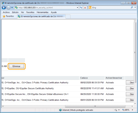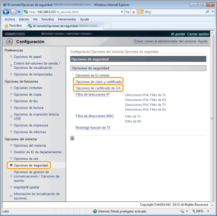 Inicialización de claves y certificadosPodrá devolver las claves y los certificados, así como los certificados de CA, a sus valores predeterminados.