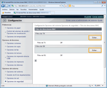 Número de direcciones MAC que pueden especificarsePodrán especificarse hasta 32 direcciones MAC.