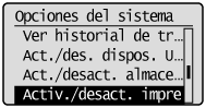 Seleccione <Activ./desact. impresión directa de USB> utilizando [