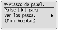 Consultando el procedimiento que se muestra en la pantalla, siga los pasos que se presentan a continuación para retirar papel atascado.