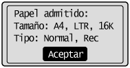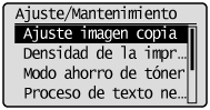 - Tamaño de papel: A4 o Carta - Tipo de papel: Papel normal o Papel reciclado - Hojas de papel: 1 hoja o más Si ejecuta el ajuste de imagen de copia con el tóner agotándoseAunque intente ejecutar el ajuste, la imagen podría no mejorar.