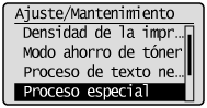 Debido al tipo de papel (por ejemplo, papel grueso) o a las condiciones de uso (por ejemplo, ambiente seco), podrían aparecer manchas y salpicaduras de tóner en el documento impreso. Cuando esto ocurra, establezca esta opción en <On>.