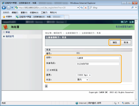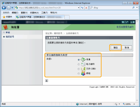 ] 或 [ ] 选择 <将新接收方注册至地址簿>,然后按 [OK]。![]()