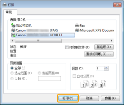 设备] → 所使用的打印机 → [打印]。用这种方法进行打印时,仅可设置部分打印功能。 |