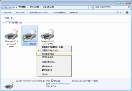](开始)→ [设备和打印机]。
