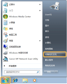 设置] → [控制面板] → [设备和打印机]。对于 Windows Vista,单击 [