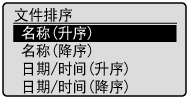使用 [  ] 或 [  ] 选择 <文件排序>,然后按 [OK]。
