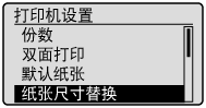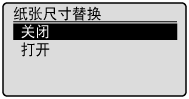 此时将更换纸张尺寸。不过,如果没有装入相应的纸张,将不会执行纸张尺寸更换。
