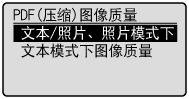 通过选择 <PDF(压缩)>,照片或插图之类的图像的压缩程度高于 <PDF>,从而降低文件大小。