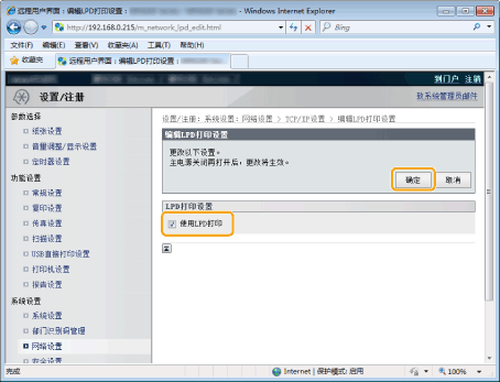 选中 [使用LPD打印] 复选框。 不使用 LPD 打印时