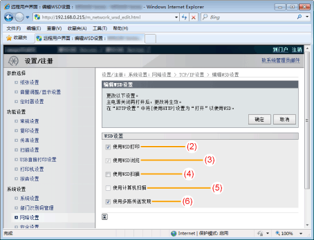 选中 [使用WSD浏览] 复选框以获得关于本机使用 WSD 端口的信息。(一旦选中 [使用WSD打印] 复选框后,将无法清除。)